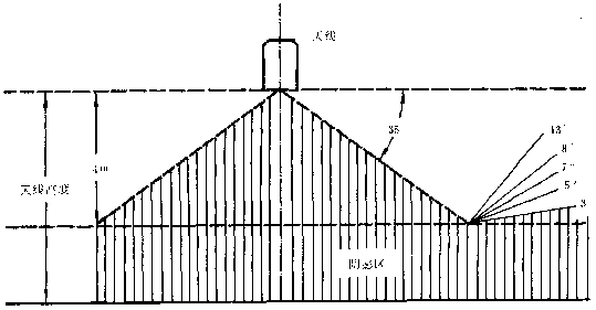 5.7.1 以天線為中心,半徑200 m以內(nèi)不得有建筑物(機(jī)房除外);半徑200 m以外,金屬結(jié)構(gòu)建筑物的高度不應(yīng)超過以天線基礎(chǔ)為準(zhǔn)1.2o垂直張角,木質(zhì)結(jié)構(gòu)建筑物的高度不應(yīng)超過以天線基礎(chǔ)為準(zhǔn)2.5o垂直張角。